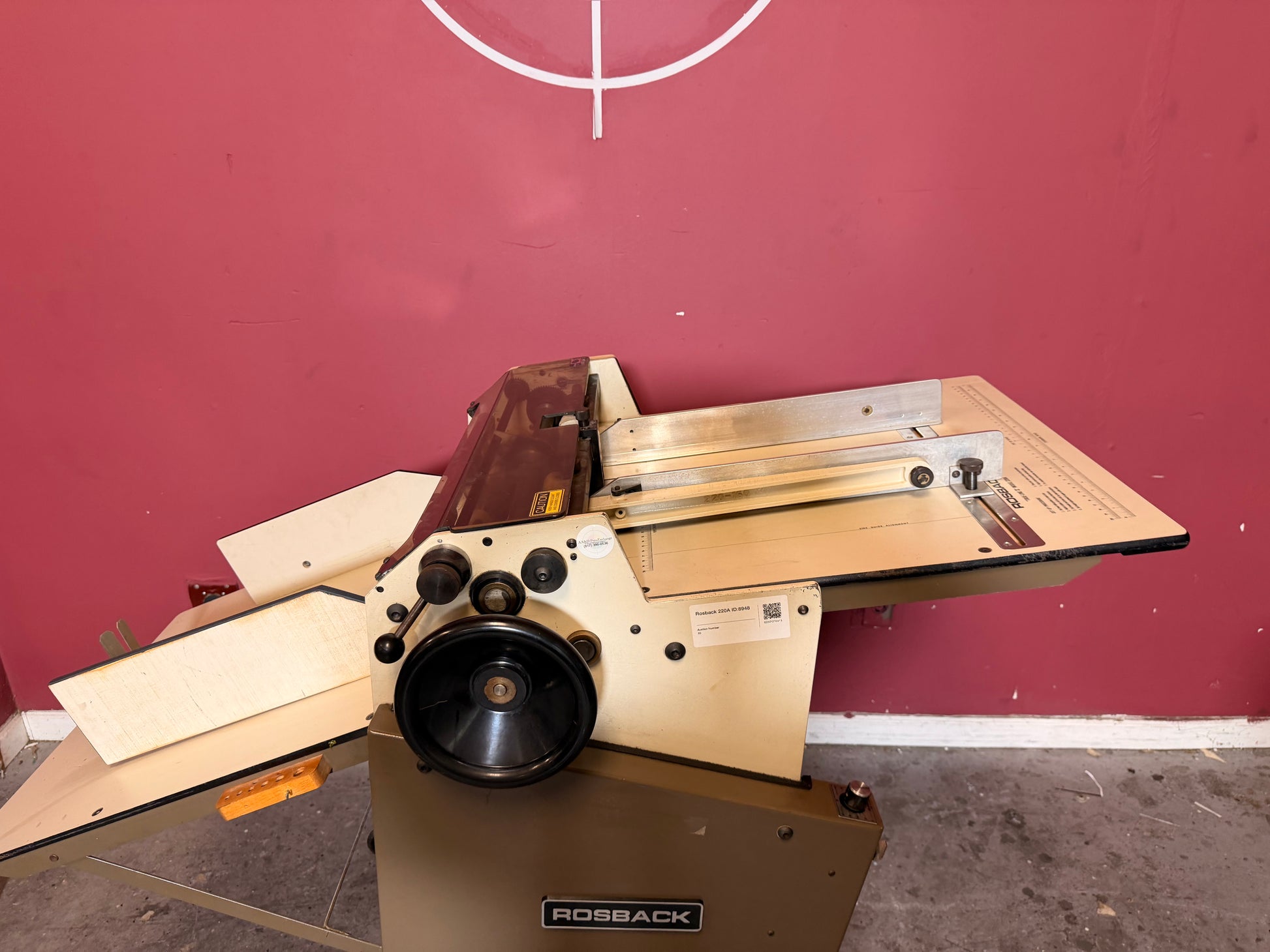 The Rosback 220A True Line is a 20-inch perf/slit/score machine designed for high-volume finishing on stock from 9 lb. manifold to 1/16" board. Key specifications include a maximum sheet size of 20" W x 23" L and a minimum sheet size of 3" W x 3" L.